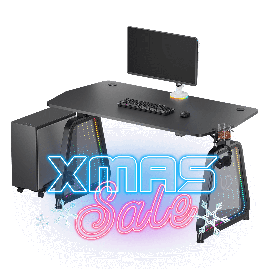 Medium-sized gaming desk offering a futuristic design, advanced functional extensions and an impressive RGB PRISMATIC LED lighting system. It is based on a reinforced steel frame and a thick desktop with a protective layer. It guarantees stability, durability and high comfort of use. High-quality materials allow it to maintain its aesthetic and functional qualities for a very long time. An exemplary desk for an ambitious player who expects a well thought out furniture design. An ideal basis for building a station based on any gaming platforms.