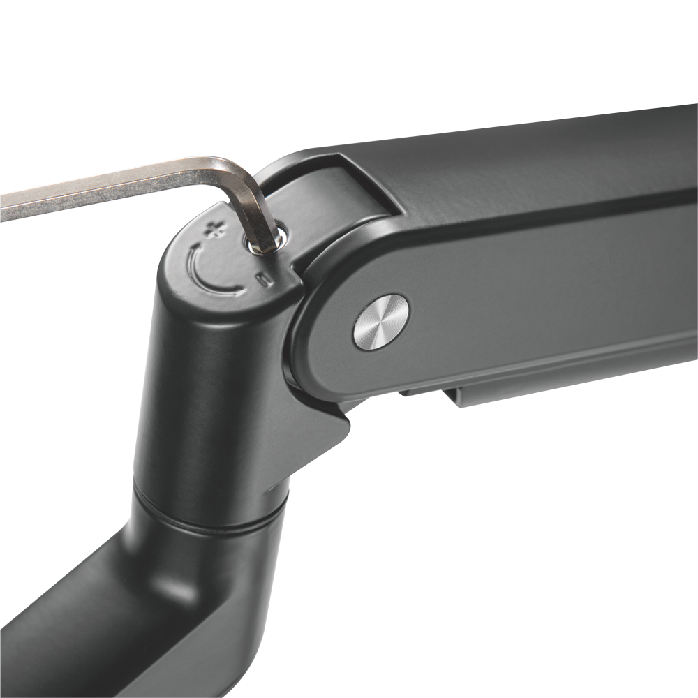 The product is equipped with a mechanism for vertical adjustment of the inclination – up and down. It will prove useful in many situations, e.g. when using a desk in a standing position. The tilt can be useful, if you often need to present the fruits of your digital work to people standing next to the desktop. This parameter is defined by mechanisms located at two points inside the arm structure, its change takes only a few seconds.