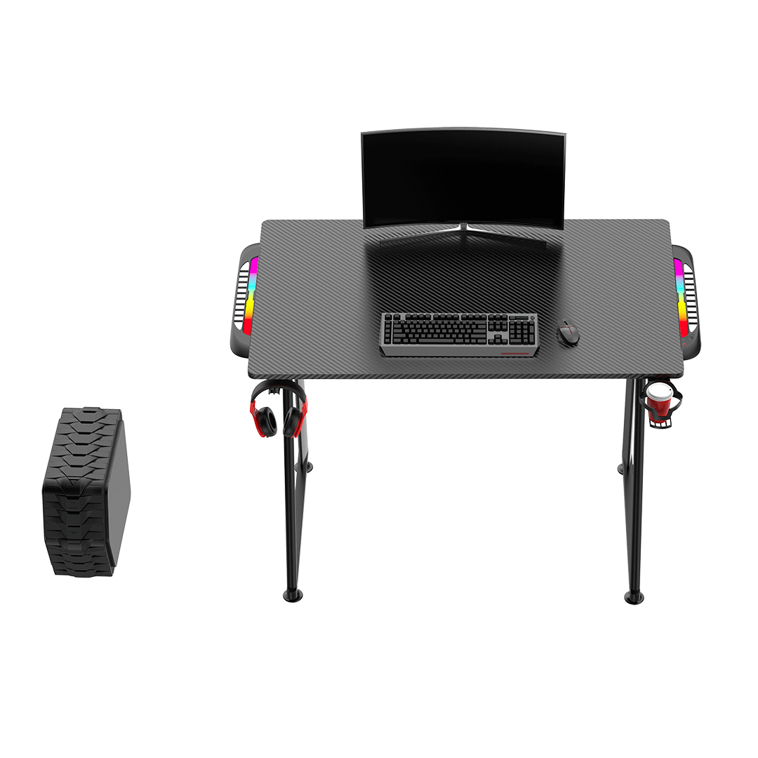 A new version of the ENTER V2 desk, which additionally offers large panels with extraordinary RGB LED backlight on the sides of the desktop. Multicolored illumination is emitted on large surfaces, which makes it really effective to illuminate the gaming desk. The casing of the panels has been given a modern shape and fully integrated with the desktop. ENTER V2 LED RGB is a compact gaming desk with great visual potential.
