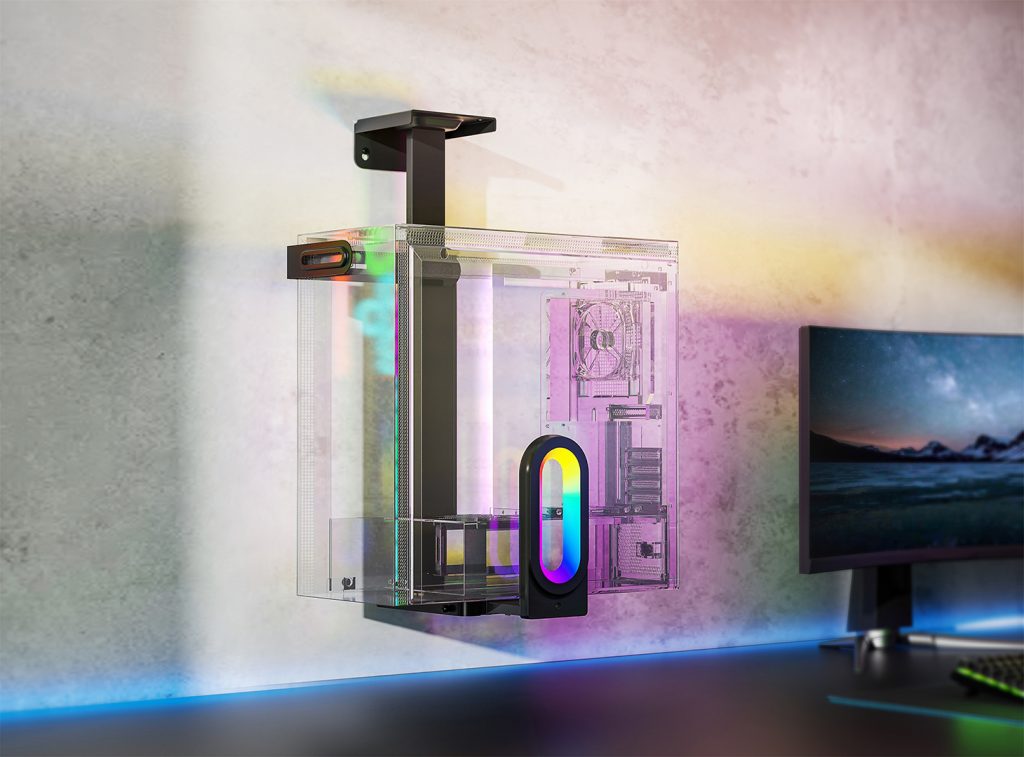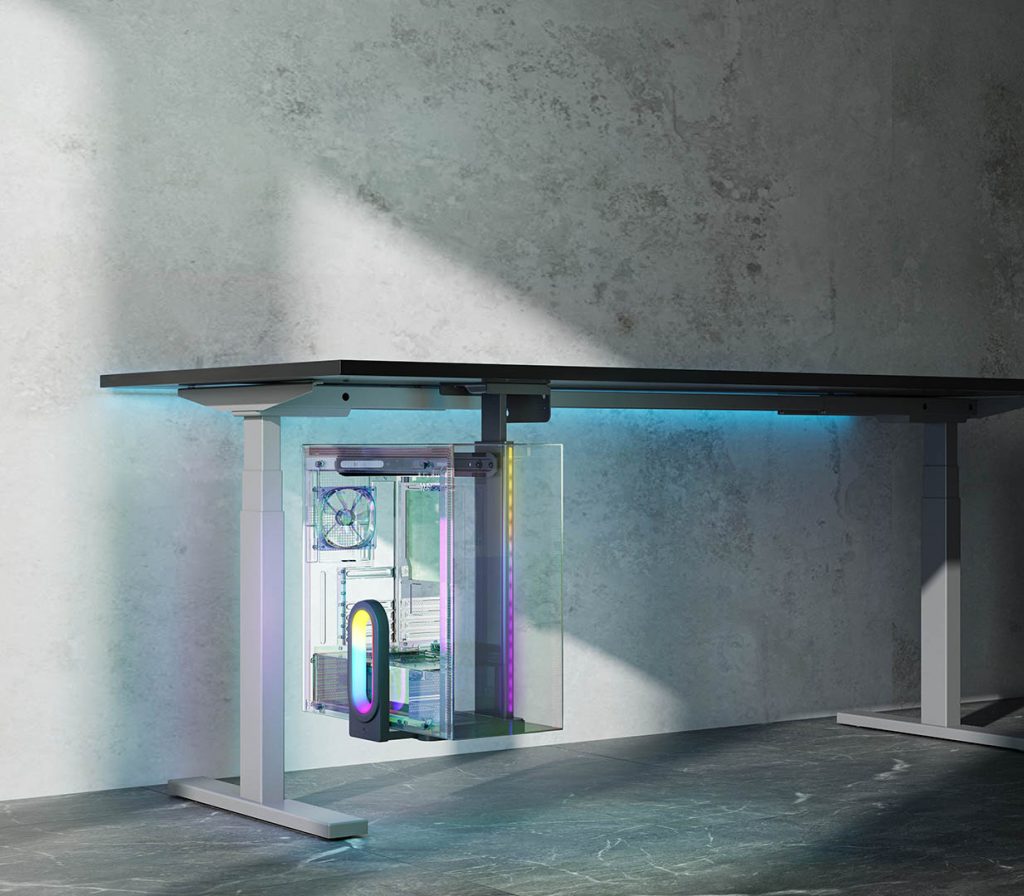 When designing new products, ULTRADESK always remembers how important it is to effectively cool the components of a modern computer. Therefore, a large, additional hole was cut out in the side wall to facilitate free air flow. The lower part of the holder and the second side wall have also been designed in such a way that air can freely reach the inside of the computer case.