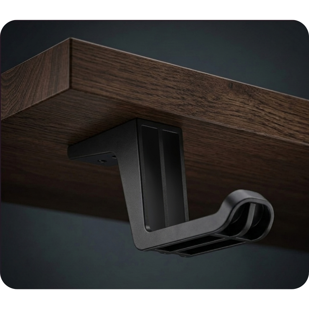 The universal under-desk headphone holder is a practical solution for keeping your workspace organized. Its sturdy construction, mounted with the included self-drilling screws, ensures excellent stability and supports loads of up to 3 kg. The universal design fits any desk and provides a safe place for virtually any type of headphones. A perfect choice for those who want their gear always within reach while maintaining a clean and aesthetic workspace.