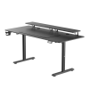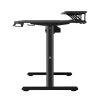 The new design of the desk allows players to freely spread their legs under the workspace. There is no fear of painful confrontations between the feet and hard metal, which contributes to increased comfort during long gaming sessions. The lack of a lower crossbar also allows comfortable use of a high computer case. You can freely place the central unit without the constraints of traditional desk construction. The frame without the lower crossbeam looks aesthetically pleasing and modern.