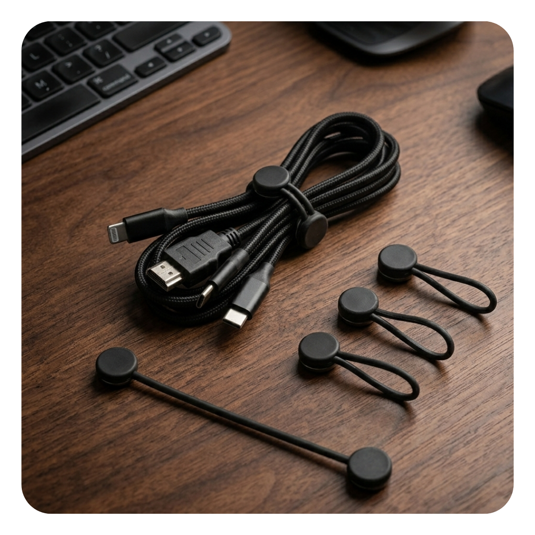 Take control of cable clutter with a set of 20 flexible magnetic cable ties that instantly bring order to your cables. Made of durable silicone, they offer an aesthetic and reusable alternative to plastic ties and rough Velcro straps. Strong neodymium magnets allow you to secure charging and computer cables in a split second without damaging their surface. This set gives you 20 opportunities for a perfectly organized workspace.