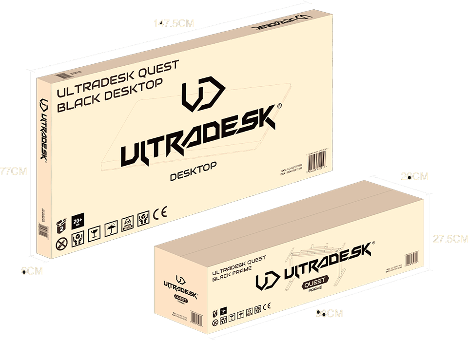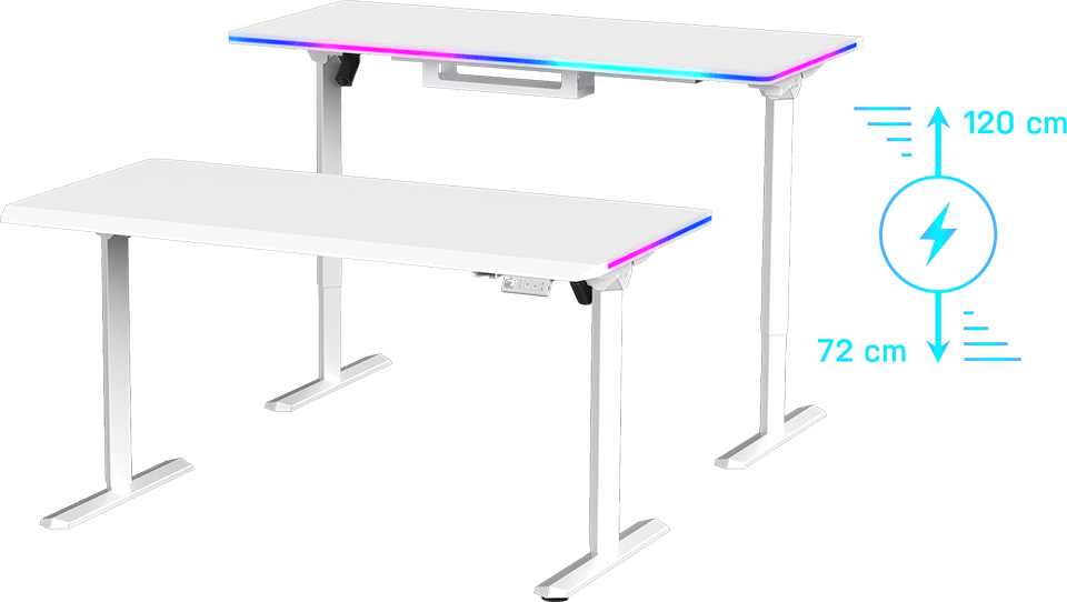 An advanced system for precise height adjustment of the desktop from 72 to 120 cm allows for use while sitting or standing. A modern electric motor and user-friendly control panel ensure safe raising and lowering of the workspace. Our electric height adjustment system consists exclusively of high-quality components, guaranteeing maximum reliability and durability. Thanks to the electric height adjustment, the ULTRADESK QUEST always adapts perfectly to your body dimensions!