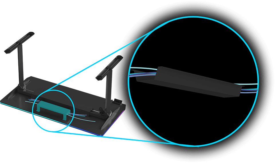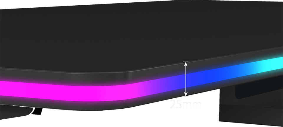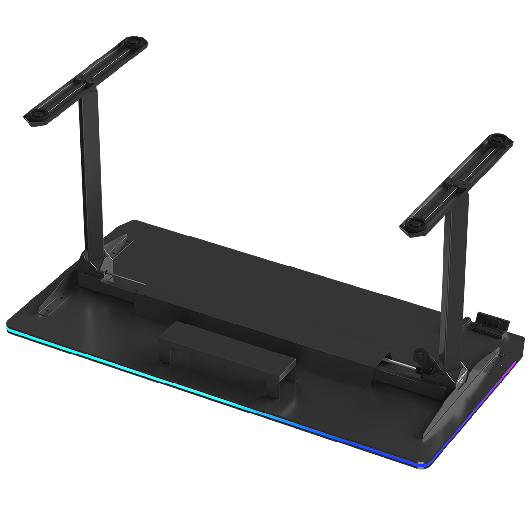 This new desk design allows users to comfortably stretch their legs under the desktop. Painful contact of the feet with hard metal is a thing of the past, significantly increasing comfort during long gaming sessions. The absence of a lower crossbar also allows for easy placement of tall PC cases underneath. The frame without a lower crossbar has an aesthetically pleasing and modern look.