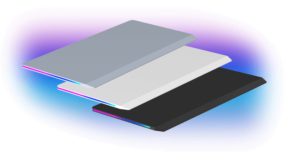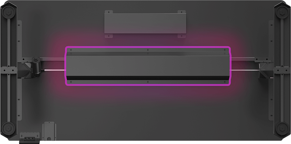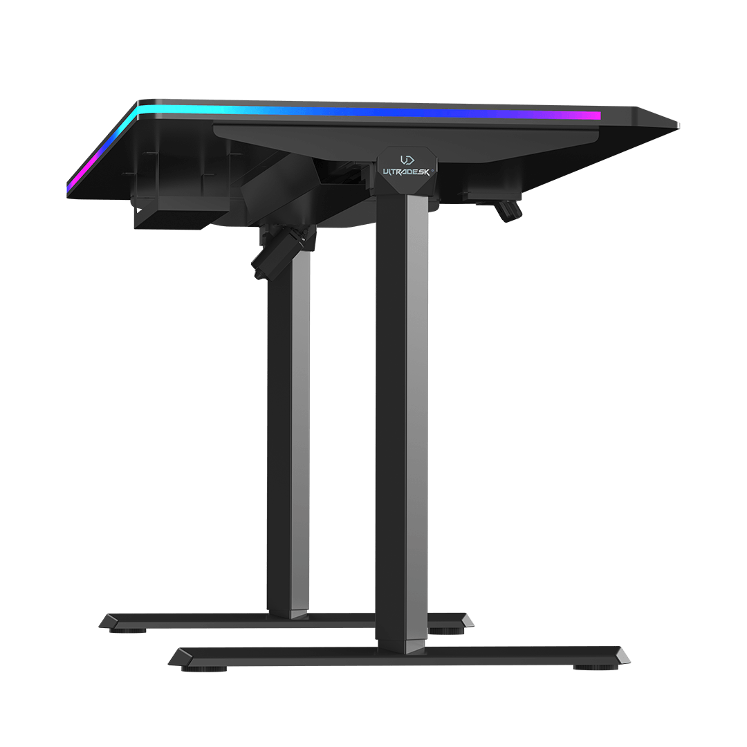 Fluorescent ULTRADESK logos are located on the sides of the desk. Made of light-reactive material, they give the product a futuristic and dynamic character without detracting from the overall aesthetic of the desktop. In the dark, the logo immediately catches the eye, ensuring greater product recognition.