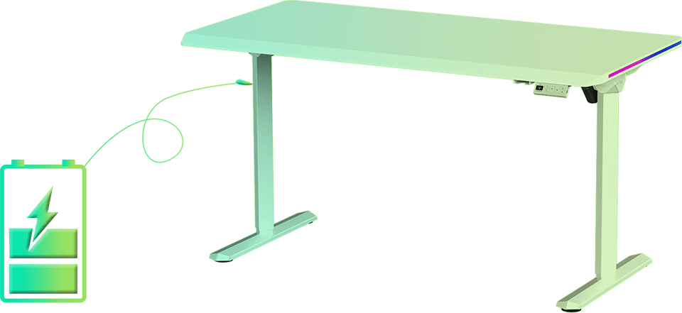 The height adjustment system’s motor is exceptionally energy-efficient. The electronics integrated into the desk’s control panel are optimized for minimal power consumption in standby mode. Our height adjustment system is an environmentally friendly solution that will barely impact your electricity bill. Thanks to the energy-saving motor, low standby power consumption, and the use of mains power, our desk is both environmentally and budget-friendly. The entire system is powered by a standard 230V outlet.