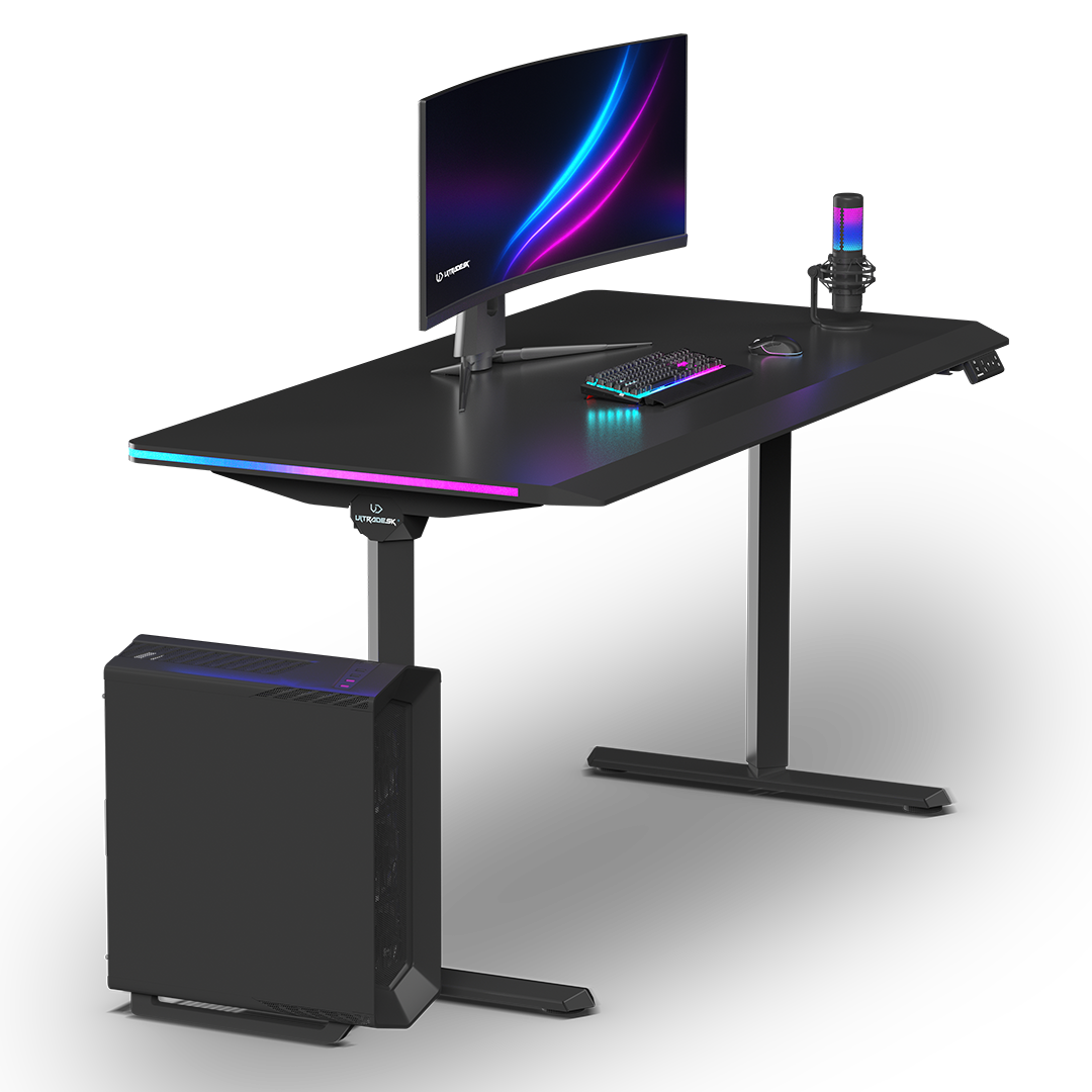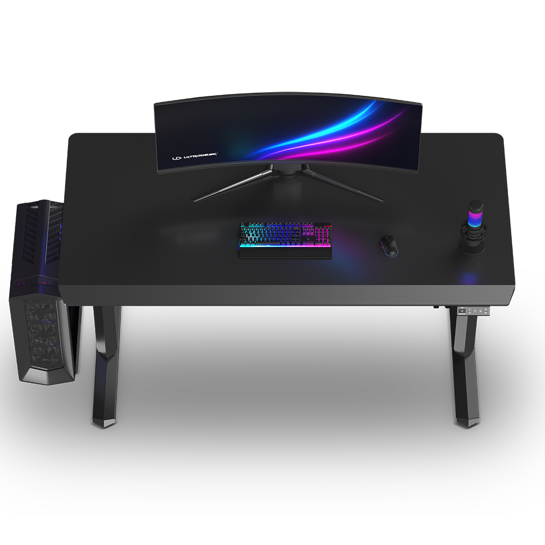 The highly versatile ULTRADESK QUEST computer desk is designed for a wide range of uses. It’s suitable for gaming, as a workspace, or for everyday study. Its use can change over time. The QUEST is also ideal for gaming streamers and anyone who frequently works standing up, as it allows for comfortable standing streams or online meetings and offers plenty of space for equipment. As a versatile piece of furniture with a comfortable design and diverse applications, the ULTRADESK QUEST perfectly meets every challenge.
