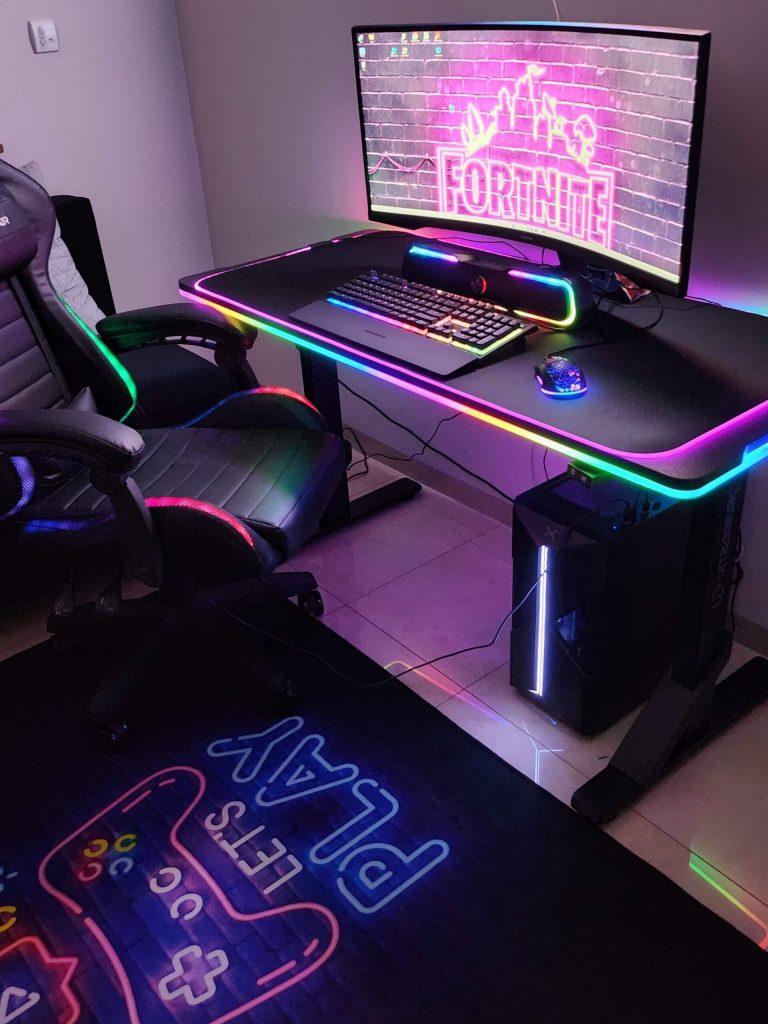 Although a 360° lighting system has been used under the edge of the desktop, the product remains fully compatible with most monitor holders. You can attach one or more holders anywhere on the back edge of the desktop. ULTRADESK IRON offers enough space for gaming sets, that are equipped with multiple displays.