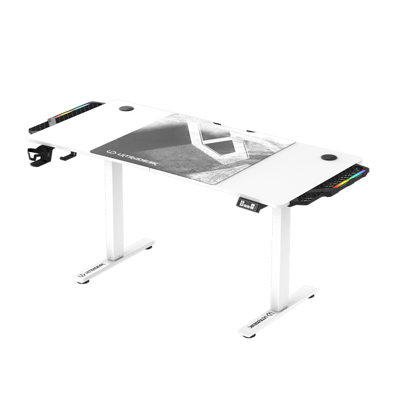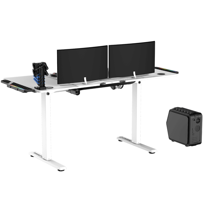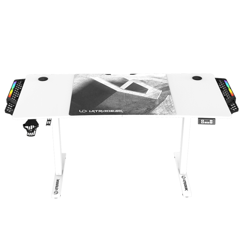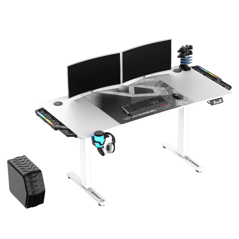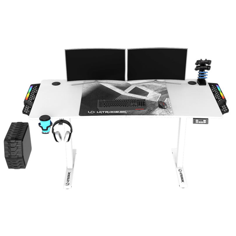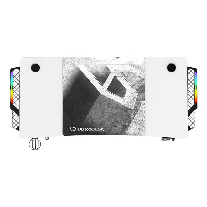 A computer desk must offer a wide range of useful accessories. On the sides of the ULTRADESK LEVEL V2, under the front edge, you can install a cup holder and a headphone holder (included in the set). Both of these extensions aren’t just for decoration – most users use them on a daily basis. A unique attraction is the BEAM rack, which makes it easy to charge a wide variety of mobile devices and accessories through USB ports. The rack is of course also used to store gamepads or game boxes and is included in the price.