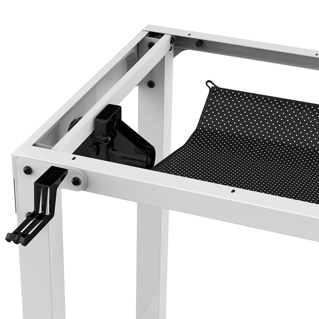 The new design of the frame allows players to freely spread their legs under the workspace. There is no fear of painful confrontations between the feet and hard metal, which contributes to increased comfort during long gaming sessions. The lack of a lower crossbar also allows comfortable use of a high computer case. You can freely place the central unit without the constraints of traditional frame construction. The frame without the lower crossbeam looks aesthetically pleasing and modern.